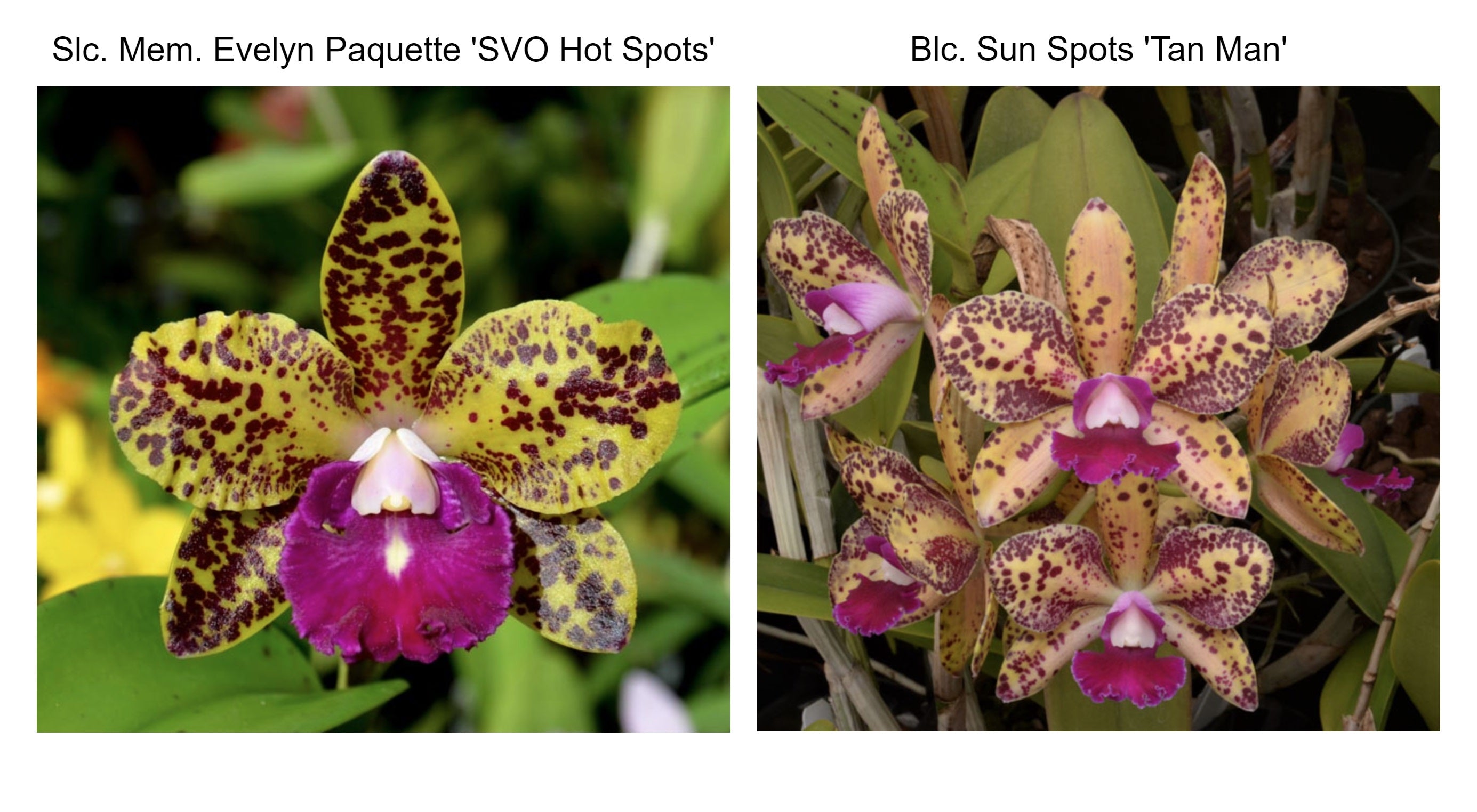 Slc. Mem. Evelyn Paquette 'SVO' x Blc. Sun Spots 'Tan Man Spots'