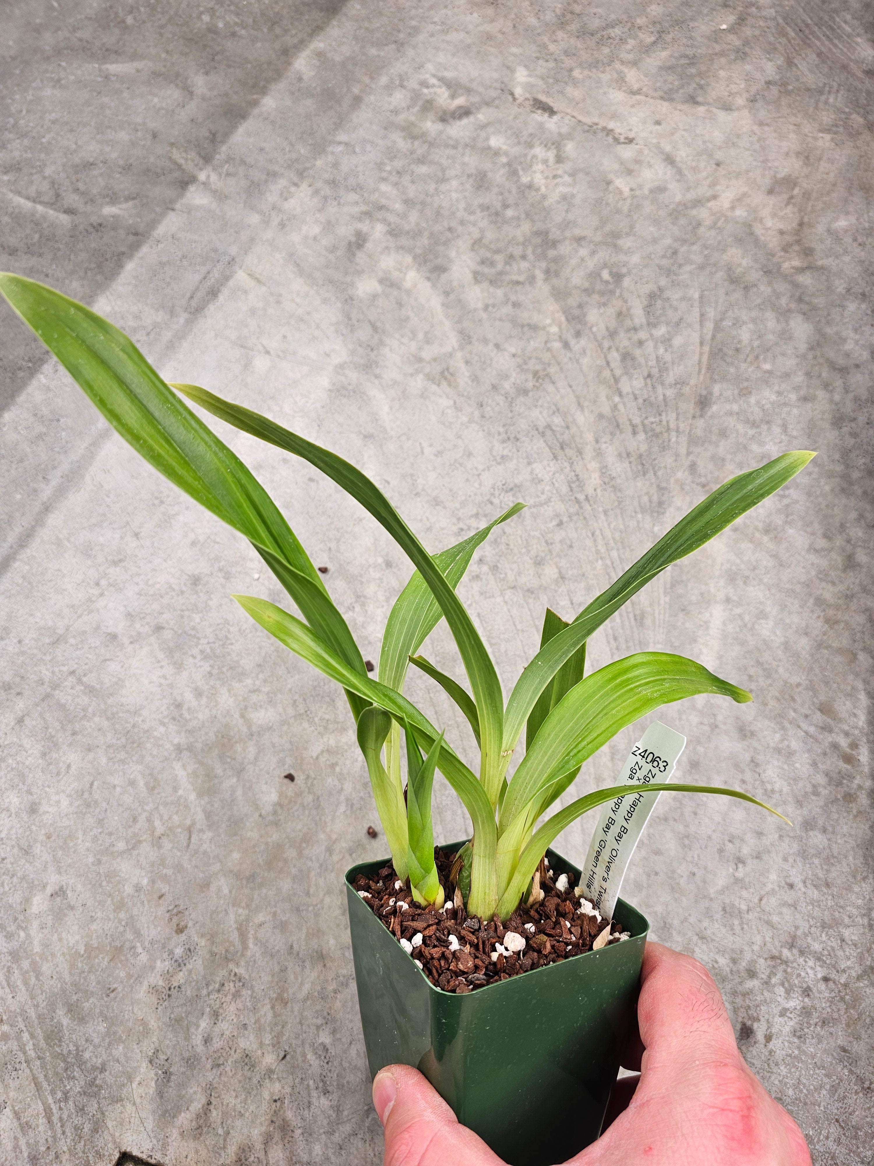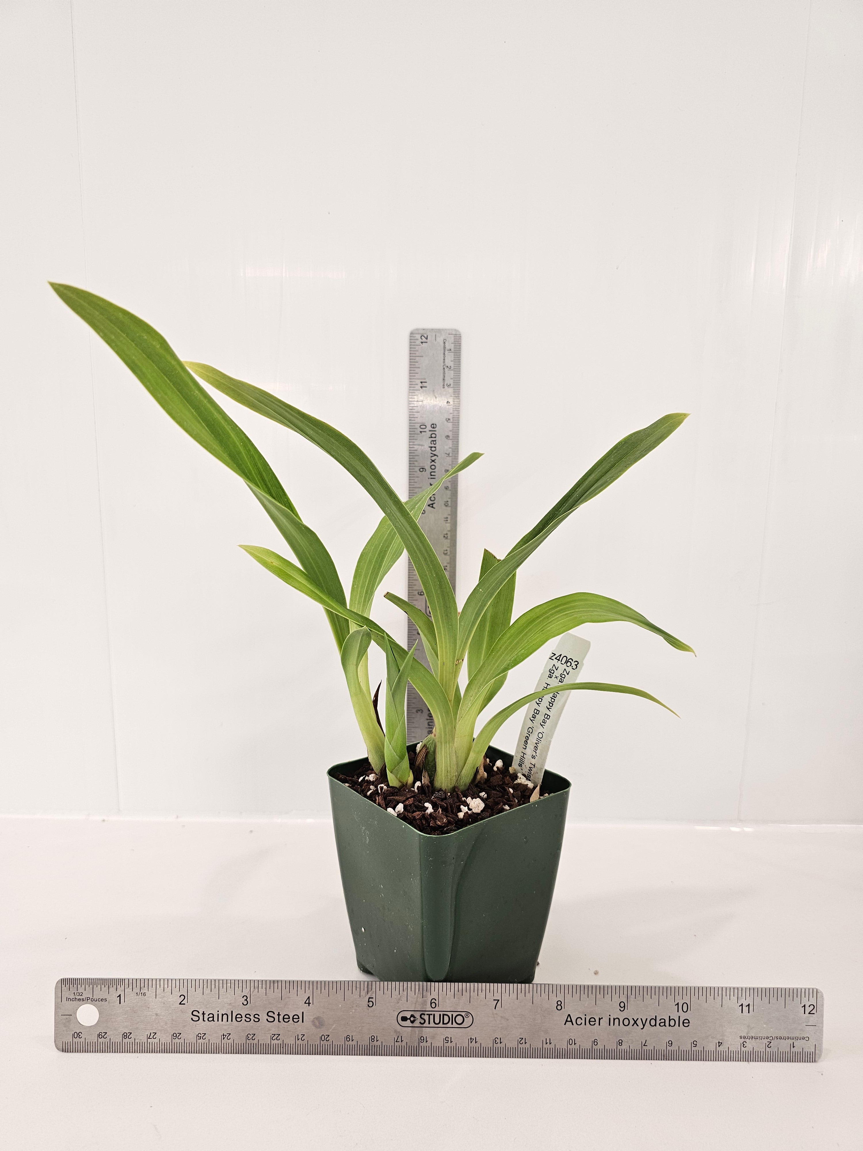 Here is a chance to flower yellow/orange blooms that will be great eye catchers. Great for exhibition this hybrid will definitely be showy plant in bloom. It will attract a lot of interest. As a pot plant a huge potential. Colours yellow/orange plus a few greens. Plants are again compact, and although a standard cross, flower spikes can appear on plants growing in 130mm pots. Perfumed.