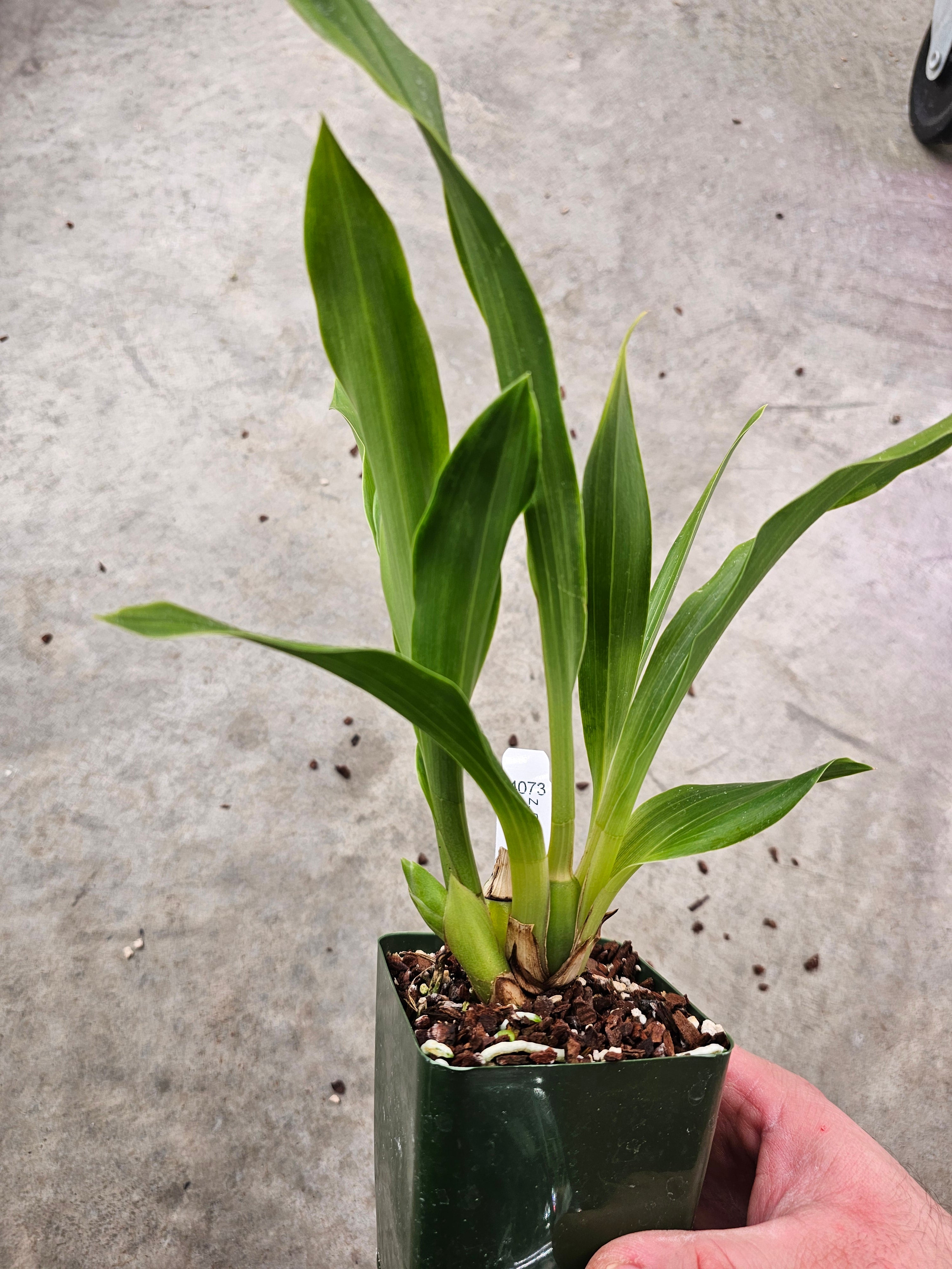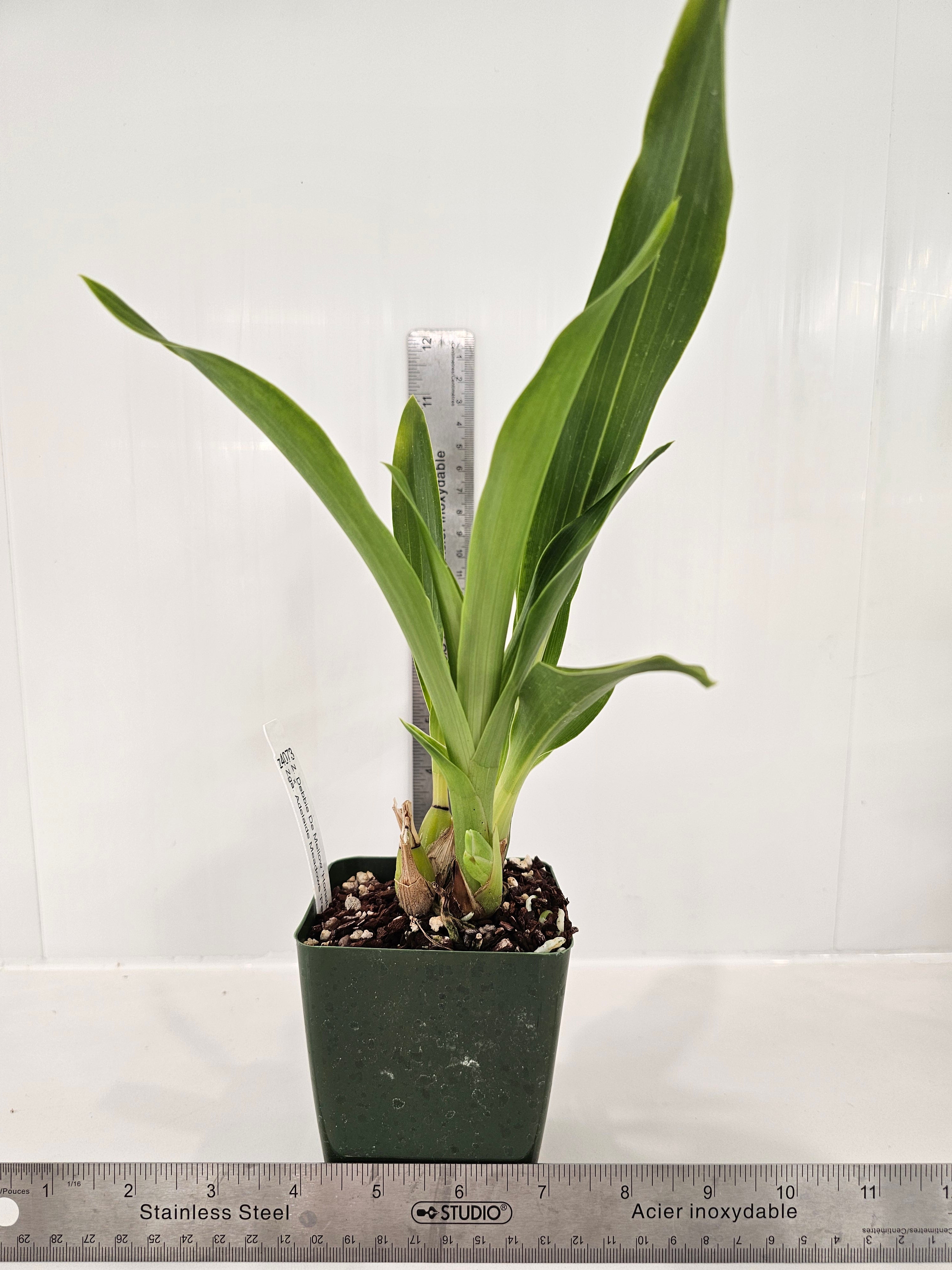 A chance to see black blooms overlaid with a yellow/green striping. Should be eye-catching. Flowers will be standard size, upright flower stems and solid lips. Perfumed