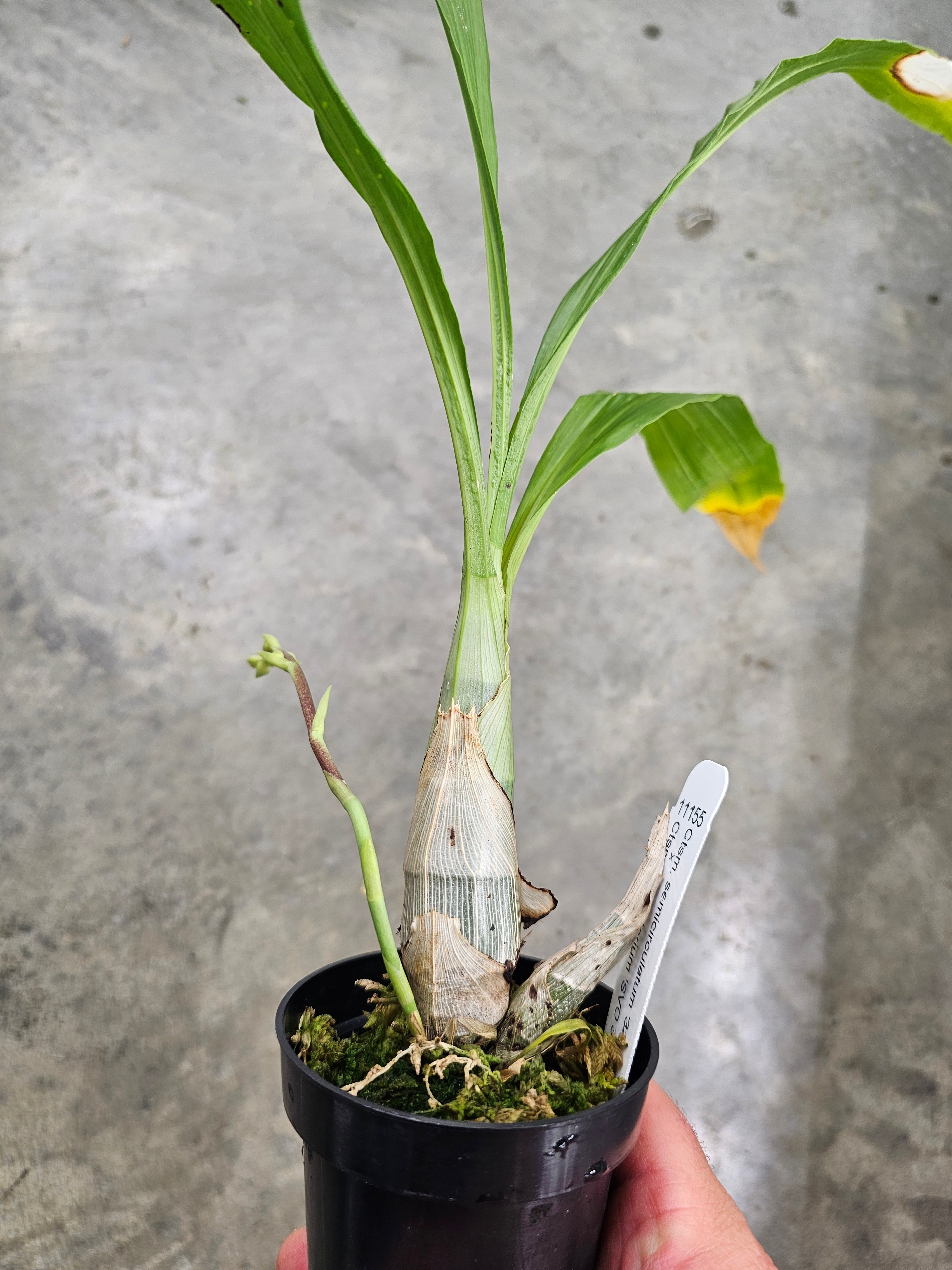 This is a novelty hybrid designed to produce many, and I mean many, flowers. I won't be surprised if there are 35 or more flowers on each two-foot-long inflorescence. The spotted flowers will have exotic lip structures and be very easy to grow and bloom. This is a super different style of breeding for us, and a fun one to experiment with.